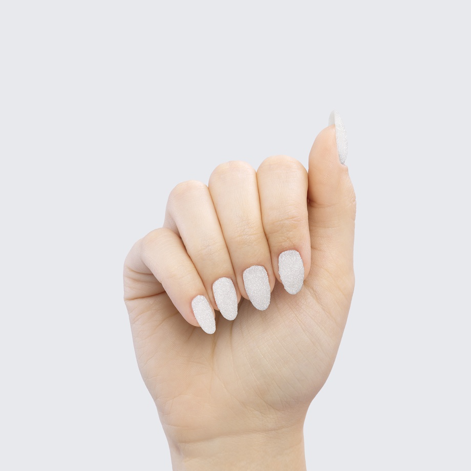Tap into your elegance; top your manicure with our beautiful new white shimmer powder that catches the light like thousands of tiny white crystals.